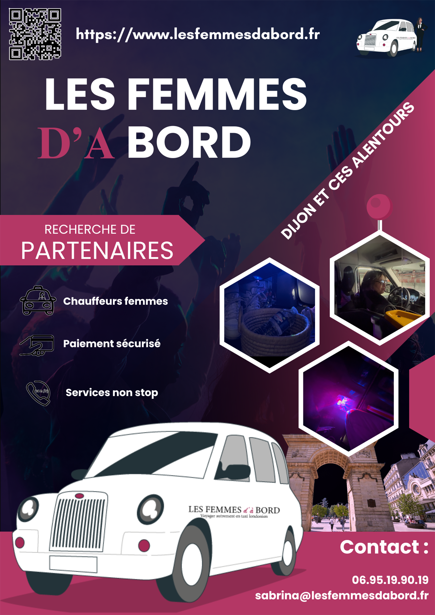 Dans le cadre du concours PUBLICICOM, nous avons eu l’opportunité avec mon groupe de collaborer avec une intervenante extérieure liée au service de taxi “Les Femmes d’Abord”, une initiative présente à Dijon. Son concept repose sur une offre de transport sécurisante et bienveillante, pensée en particulier pour les femmes.